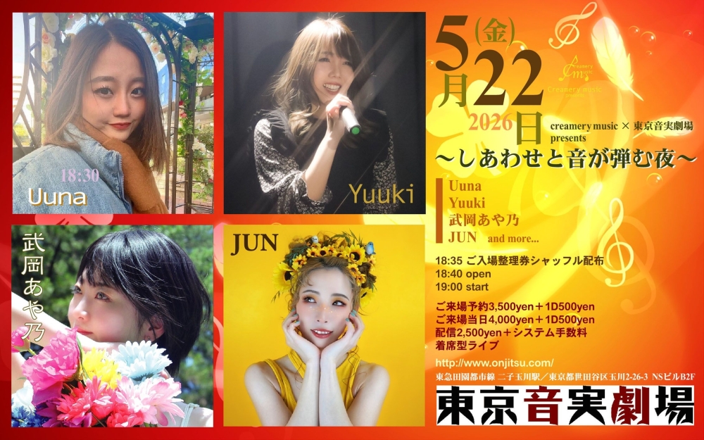 2026年05月22日のイベント | スケジュール | 二子玉川 ライブハウス | 東京音実劇場